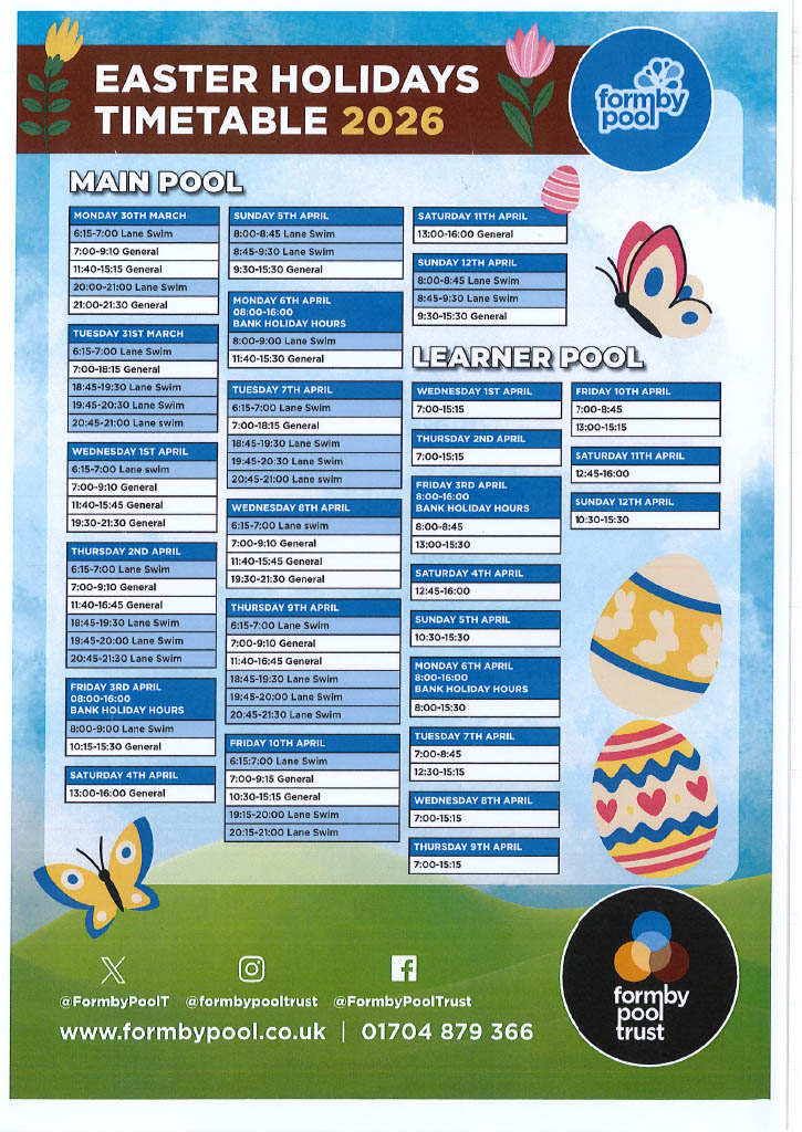 FOR THE EASTER HOLIDAY 2026 POOL TIMETABLE - CLICK THE BUTTON BELOW